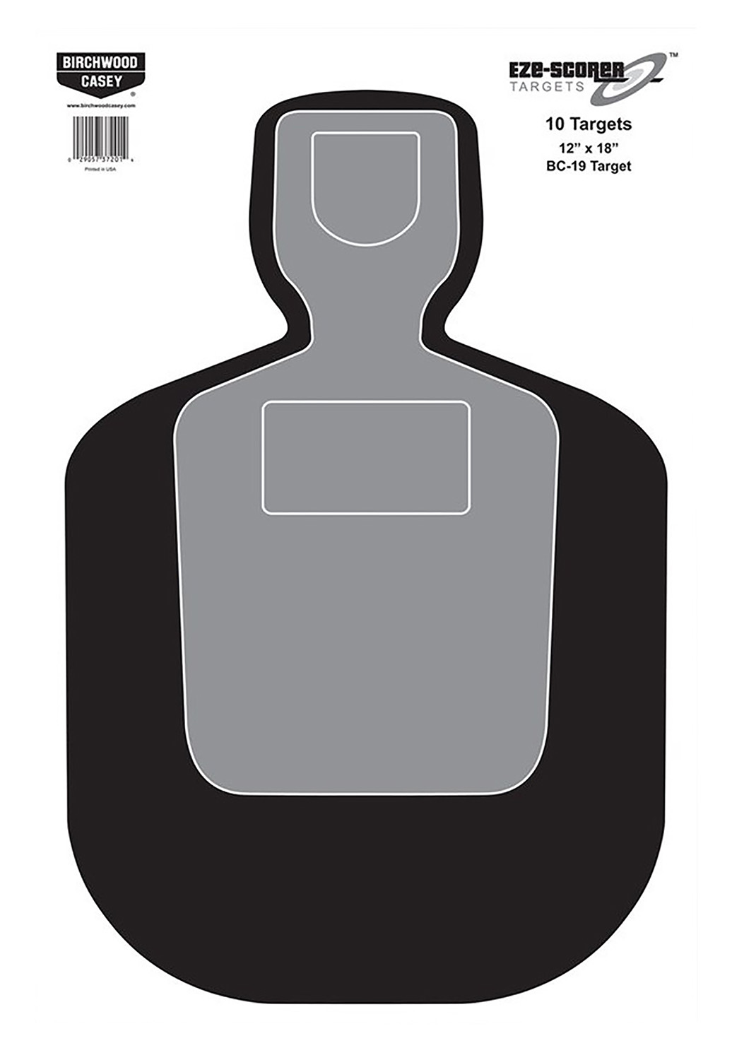 With Birchwood’s EZE-Scorer BC-19 Target shooting has never been easier. Practice or train on this target which is great at practical training distances at indoor or outdoor ranges. It is printed on brilliant white paper to contrast the black and gray silhouette design.