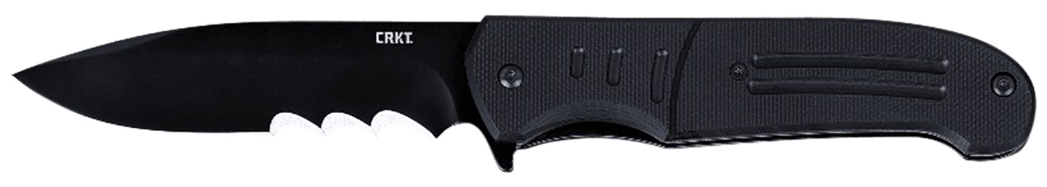 CRKT 6885 Ignitor 3.48″ Folding Drop Point Part Serrated Black Oxide 8Cr13MoV SS Blade/Black G10 Handle Includes Pocket Clip