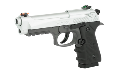 This CO2-powered BB Air Pistol is a Semi-auto repeater with a blowback slide and Fiber optic sights.