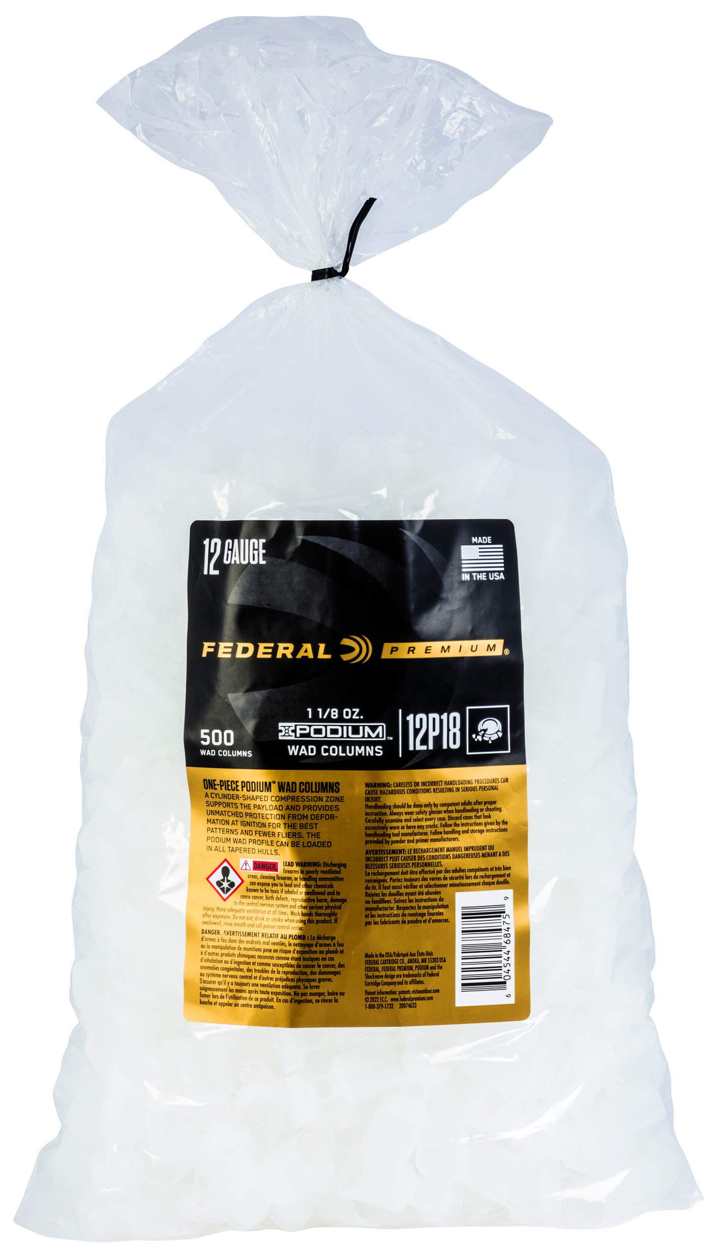 Federal 12P18 Podium Wad Premium 12Gauge 1 1/8oz White Plastic 500/ 10