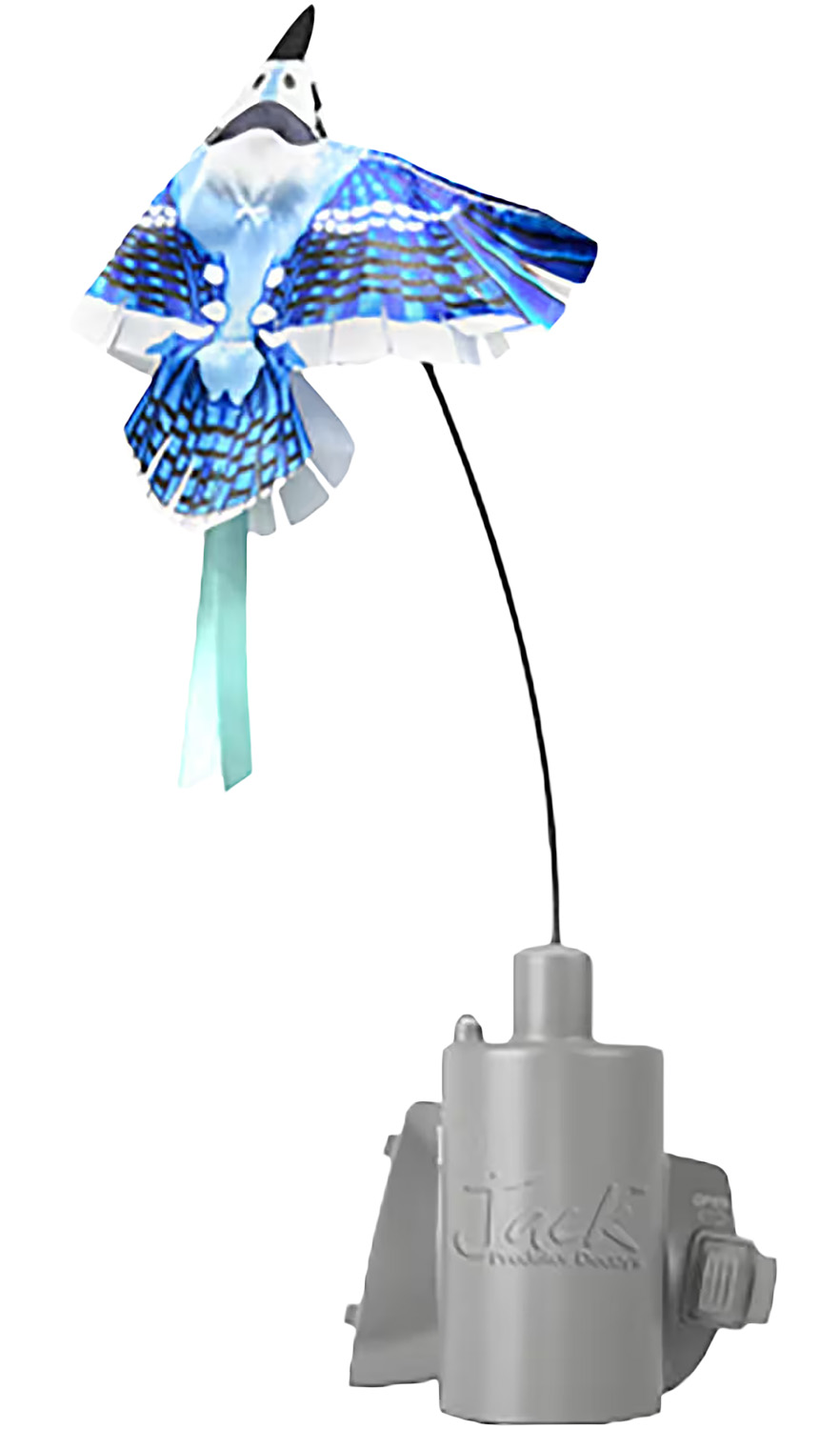 Now you can turn your current FOXPRO digital game call into an all-inclusive and portable predator-calling machine. Simply replace your existing battery door with the FoxJack 5, connect the batteries and 3.5mm mono patch cable from the decoy to your FOXPRO digital game call and you’re ready to go. The FoxJack 5 features a blue bird topper with a whisper quiet motor, LED for night time use, it can be controlled remotely (remote not included) with your FOXPRO remote digital game call. The FoxJack 5 is compatible with the INFERNO, PATRIOT, SPITFIRE and WILDFIRE 1 and 2.