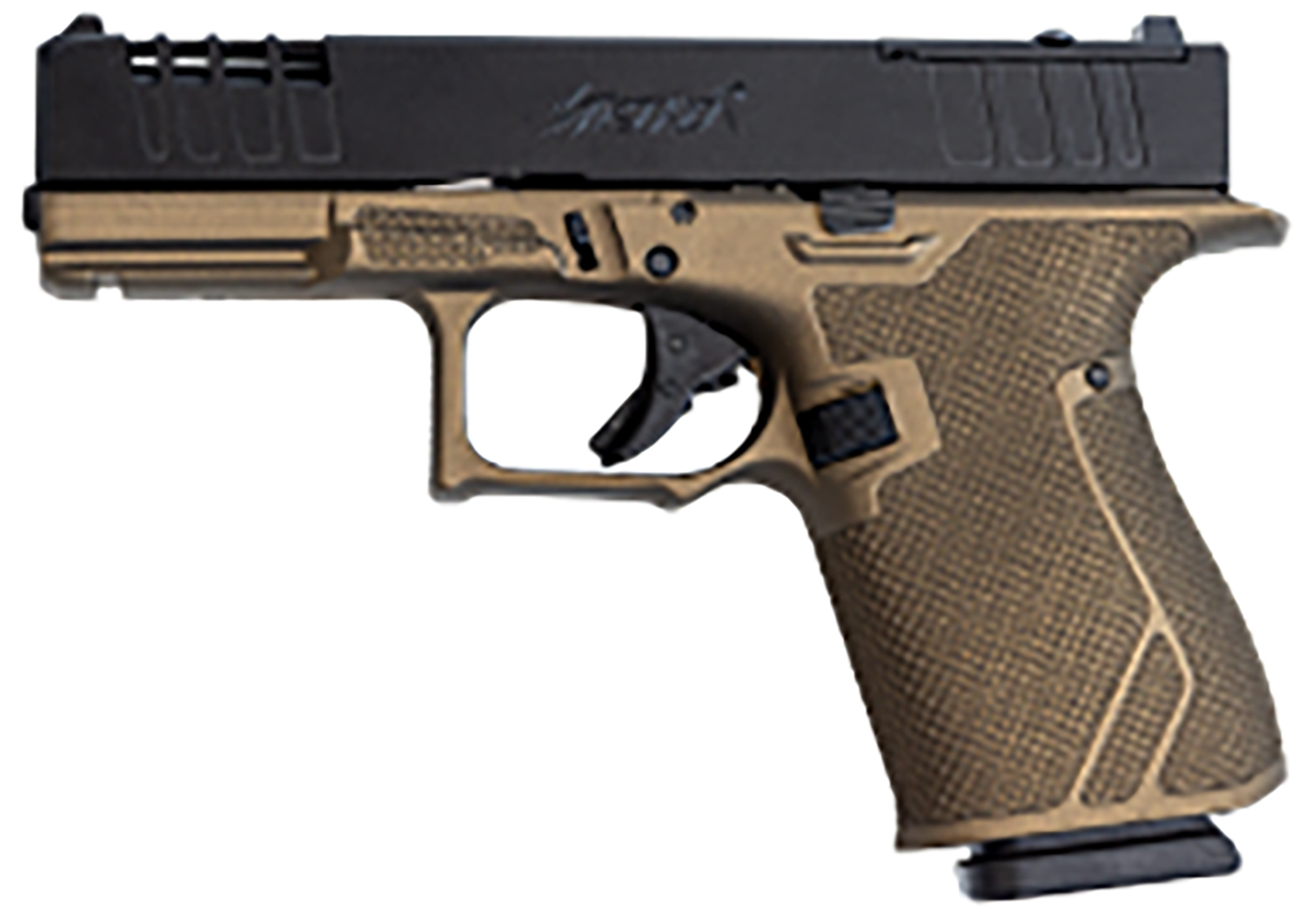 The Great Lakes GLFA 19 Striker 9mm compact features a polymer frame, optic ready RMR compatible ported slide w/front & rear slide serrations, compatible with Gen3 parts, ambi-magazine release, Cerakoted Bronze frame and 4″ barrel. Includes 15rd Glock compatible magazine.