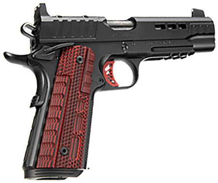 The RAPIDE (HEAT) (OR) boasts performance enhancing features such as stepped cocking serrations, slide lightening cuts for faster return to battery, DLC black threaded barrel for extreme durability, flush fitting extended magwell, new V-Cut match grade trigger breaking crisply at 4-5lbs, KimPro II black finish steel frame steel frame with picatinny rail, as well as white dot sights with a rear optic cover plate featuring a built in rear sight. The RAPIDE (HEAT) (OR) is equipped with Kimber Stiplex front strap texturing, as well as black and red G10 Grips, finished with KimProII for additional resistance to chemicals, moisture, salt and UV light.