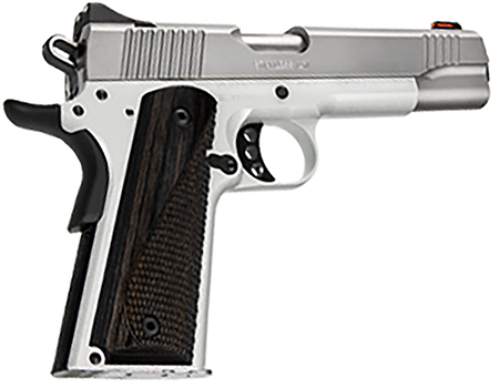 The STAINLESS LW offers 1911, with white dot rear sight and red fiber optic front sights, weight reducing aluminum frame, contrasting black small parts and sharp looking gray laminate grips with checkered gripping area for positive hold round out this unique package.