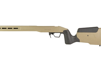 Get more accuracy out of your factory rifle by upgrading with the Field Stock. The traditionally shaped polymer stock provides comfort and warmth in cold weather. Improve accuracy with the aluminum v-block bedding and a free-floating barrel. The adjustable buttstock allows you to be more comfortable for long-range shots. The Field Stock is configurable for any shooting discipline. In addition to the included sling swivel studs, the M-LOK forend enables you to customize accessories for hunting, competition, or casual long-range shooting.