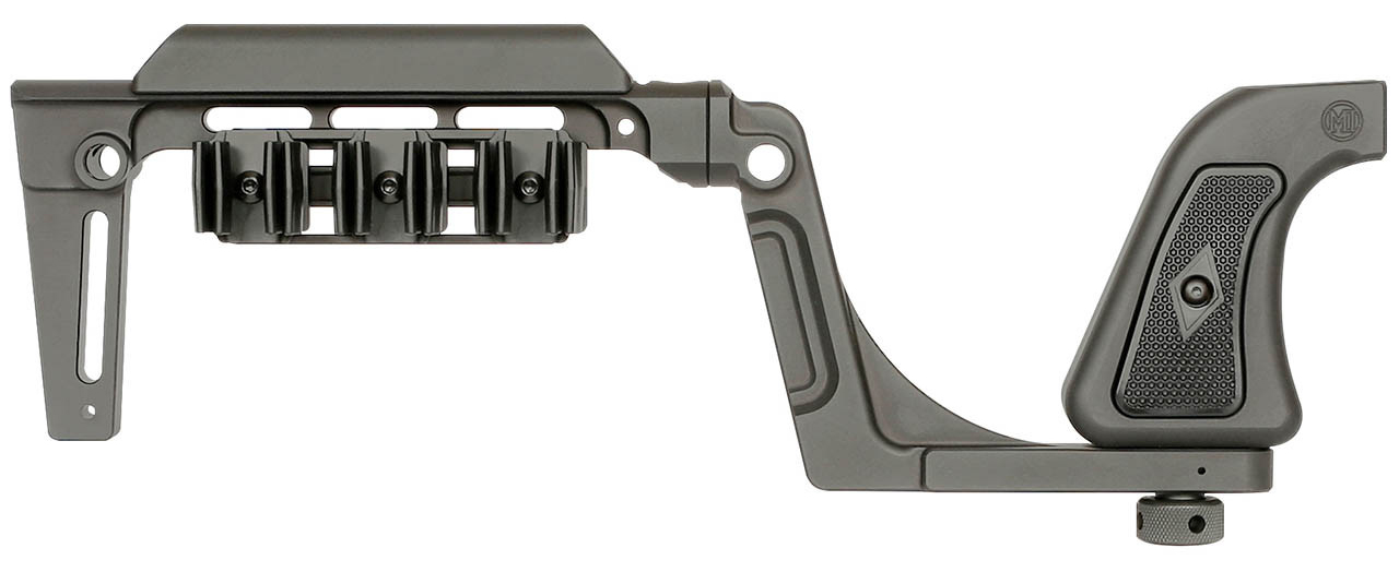 The Bounty Hunter Series is a groundbreaking patent pending new system that introduces an entirely new approach to how revolvers can be configured and experienced. Designed to provide additional points of contact increased stability enhanced comfort and simplified takedown for storage and transport it reimagines the revolver as a more adaptable and customizable platform. – Compatibility Only for use with Ruger® Blackhawk Revolvers – Specifications – Available as a stock or arm brace designed for enhanced stability and control across small and large revolver calibers – Constructed from Hard Coat Anodized 6061 Aluminum for the grip stock and Z-beam ensuring durability and lightweight performance – Features polymer textured grip panels a polymer cheek piece and a rubber butt pad for superior comfort and recoil management on the stock version – Properly aligned height for seamless use with iron sights and red dot mounts – Multiple points of contact improve shooting accuracy and control – Ambidextrous design for right or left-handed shooters – Includes a shell plate holder with 3 Midwest Industries Universal Shell Holders compatible with any revolver caliber and allowing 6 rounds of ammunition to be stored – Hardened steel takedown thumbscrew enables easy disassembly for compact storage – Equipped with 5 quick-detach sling sockets for customizable sling configurations – Designed with sufficient room for easy firearm handling and operation – Patent-pending Design – Made in the USA – Lifetime Warranty – Weight: 1.75lbs