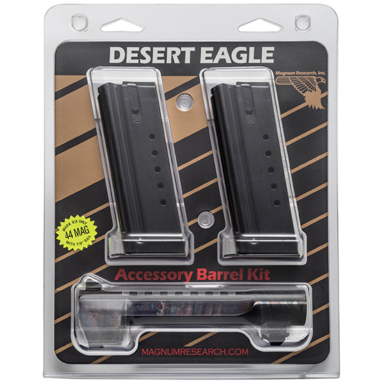 Convert your Mark XIX Desert Eagle .50AE to a .44 Magnum with this conversion kit! Conversion kit includes one Desert Eagle .44 Magnum 6 Black Barrel and two 8 round Magazines – .44 Magnum – Case Hardened Finish