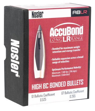 The AccuBond-Long Range bullet line was developed in response to the escalating demand from long-range hunters who were asking for a hunting bullet that could keep up with today’s level of high-grade optics and ultra-high velocity cartridges in order to stretch practical shooting yardages past 1,000 yards; yet still perform on big-game animals. In order to accommodate these extreme parameters, the AccuBond-LR bullet was designed to have a minimum impact velocity of 1300 fps in order to reliably expand or mushroom at those much longer distances, compared to the 1800 fps minimum impact velocity of all other Nosler hunting bullets. Because the lead core is bonded to the copper jacket, the AccuBond-LR bullet will hold up to extreme velocities. To further assist performance at such a wide range of impact velocities, the copper jacket is tapered, meaning it is thin at the nose, becoming much thicker towards the boat-tail base.