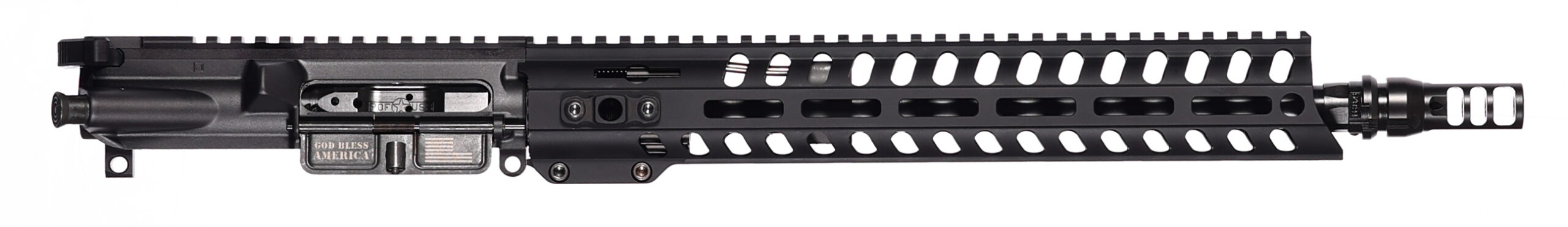 The Minuteman Upper includes POF-USA’s Mil-SPEC Enhanced bolt carrier and our patented Roller cam pin. These uppers come with our M-LOK compatible Renegade rail. – 13.75 Nitride Mid-length barrel with pinned Dead Air Keymo Muzzle break low profile gas block and 13 Renegade rail.