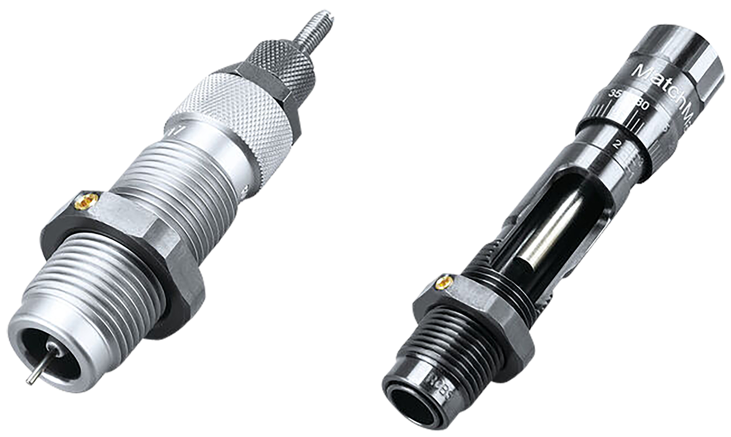 MatchMaster full length bushing die set is for people reloading long-range precision ammunition. The die set builds on the familiar RCBS Gold Metal die set.
