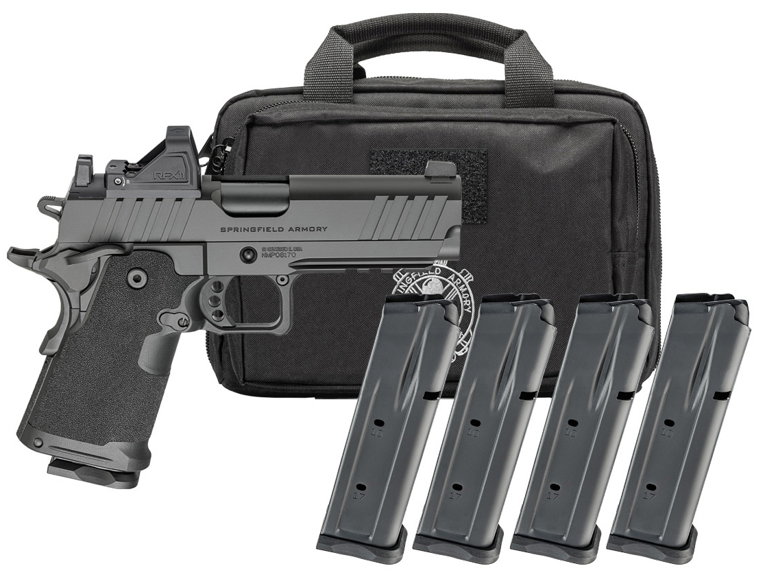 The Prodigy Compact from Springfield Armory® takes the proven 1911 platform and enhances it with double-stack capacity and a carry-focused feature set. Reconfigured around a 15-round double-stack magazine the Prodigys compact polymer grip module mounts to its lightweight aluminum frame to reduce weight while a shortened beavertail and recontoured hammer further downsize the overall footprint. Optics ready with a tritium front sight and and Picatinny rail the Prodigy Compact combines the most beloved characteristics of the 1911 with modern capacity for EDC. – Caliber 9mm – Color Black – Barrel 4.25 Forged Stainless Steel Black DLC Match Grade Bull 1:16 – Slide Forged Carbon Steel Black Cerakote® Optics-Ready – Frame Billet 7075-T6 Hardcoat Anodized Aluminum Black Cerakote® – Sights White-Dot Front Black Serrated Rear Viridian®RFX11 Green Dot – Recoil System 2 Piece Full Length Guide Rod – Grips Polymer – Magazines (4) 15-Round – Weight 29 oz – Length 7.8 – Height 5.1
