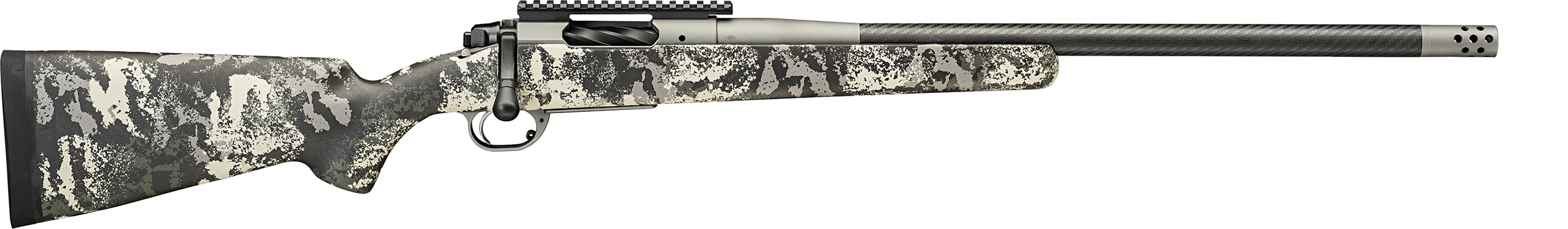 The Model 2020 Boundary chambered in 6.5 Creemdoor combines expert craftsmanship with exceptional precision. Featuring a 22-inch carbon fiber barrel it offers classic lines and modern features. Built on the custom-grade Model 2020 action with a .75 MOA guarantee it includes dual locking lugs a fluted bolt EDM raceways and an optimized extraction cam for reliable performance. The 100% carbon fiber AG Sportsman stock has a 13.5-inch length of pull QD cups and a Pachmayr® Decelerator Pad for comfort. The TriggerTech Field trigger provides a smooth adjustable pull. The rifle also includes a detachable Remington 700 pattern pic rail SA Radial Brake for recoil reduction and an aluminum hinged floor plate attached to the patent-pending one-piece bottom metal with an internal magazine. – Caliber 6.5 Creedmoor – Color Rogue Camo – Barrel 22 Carbon Fiber 1:8 Tactical Grey Cerakote® H-227 – Receiver Model 2020 Stainless Steel Tactical Grey Cerakote® H-227 – Optic Mounting Picatinny Mount Rem 700 SA Pattern 6-48 Screws – Bolt Fluted 4140 Tool Steel Nitride – Stock AG Sportsman Carbon Fiber M-Lok® QD Cups – Trigger TriggerTech Adjustable 2.5-5 lbs – Muzzle Device SA Radial Brake Tactical Grey Cerakote® H-227 – Magazines 4-Round Internal – Weight 6 lbs 15 oz – Length 43