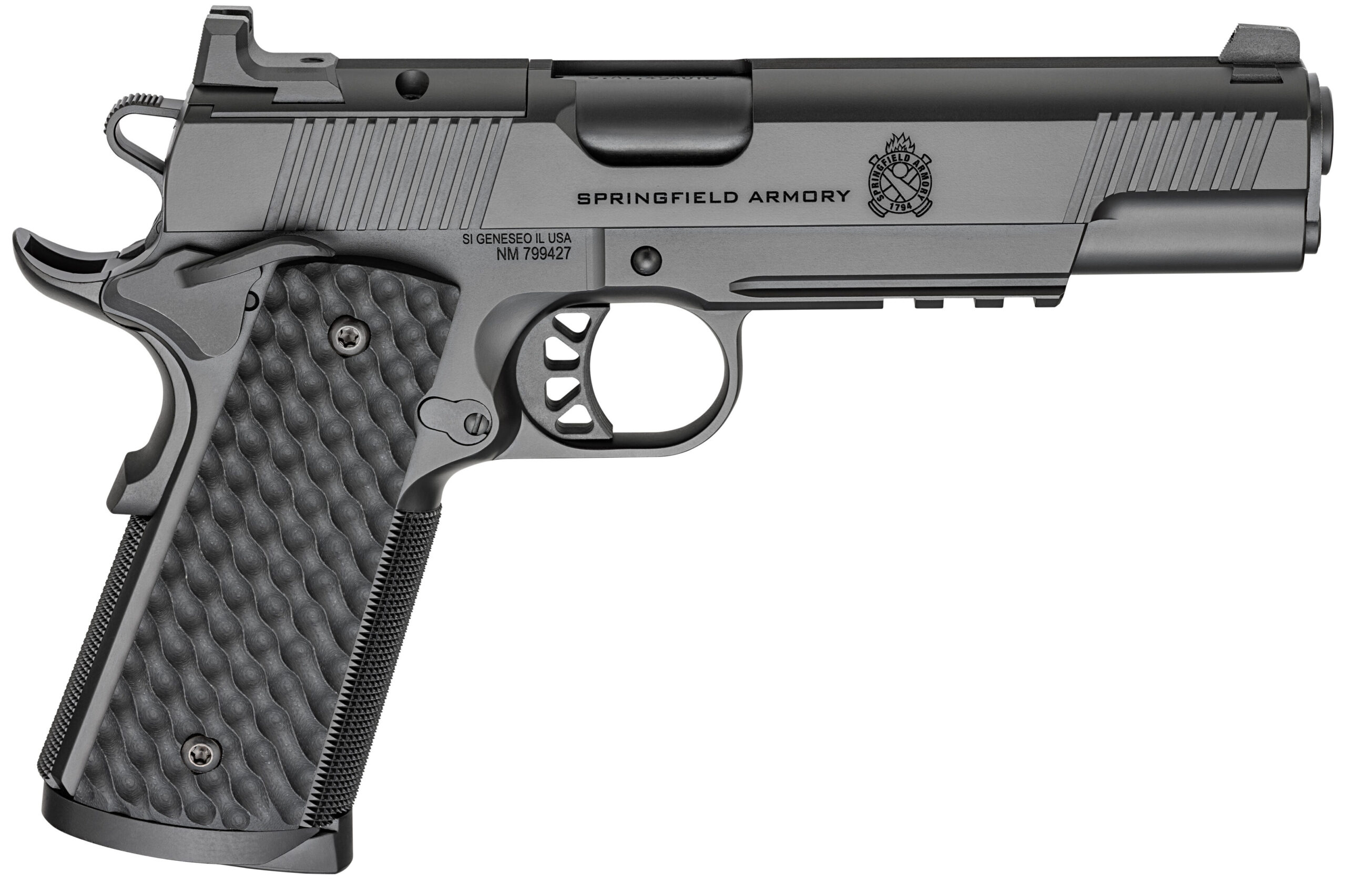 The foundation of our 1911s is built upon our unwavering commitment to crafting them from the finest materials. The TRP 5 in Black Cerakote® finish is meticulously constructed from a forged slide and frame hand-selected for a precise fit. Now enhanced with the Agency Optic System (AOS) the TRP supports a wide range of popular optics including RMR Shield Delta Point Pro and Docter. Each AOS plate integrates a black serrated rear sight that ensures optimal optic height and an intuitive sight picture enabling visible co-witnessing in nearly all configurations. The TRP is rounded out with an accessory rail for versatility 20 lines-per-inch (LPI) checkering paired with G10 grips for a secure grip and top slide serrations to reduce glare and promote faster sight alignment-hallmarks of custom-grade firearms. – Caliber .45 ACP – Color Black – Barrel 5 Forged Stainless Steel Match Grade 1:16 – Slide Forged Carbon Steel Black Cerakote® Optics-Ready – Frame Forged Carbon Steel Two-Piece Magwell Black Cerakote® – Sights Tritium Front Black Serrated Rear – Recoil System 2 Piece N.M. Full Length Guide Rod – Grips VZ Grips® Hydra G-10 – Magazines (3) 8-Round – Weight 39.2 oz – Length 8.6 – Height 5.5