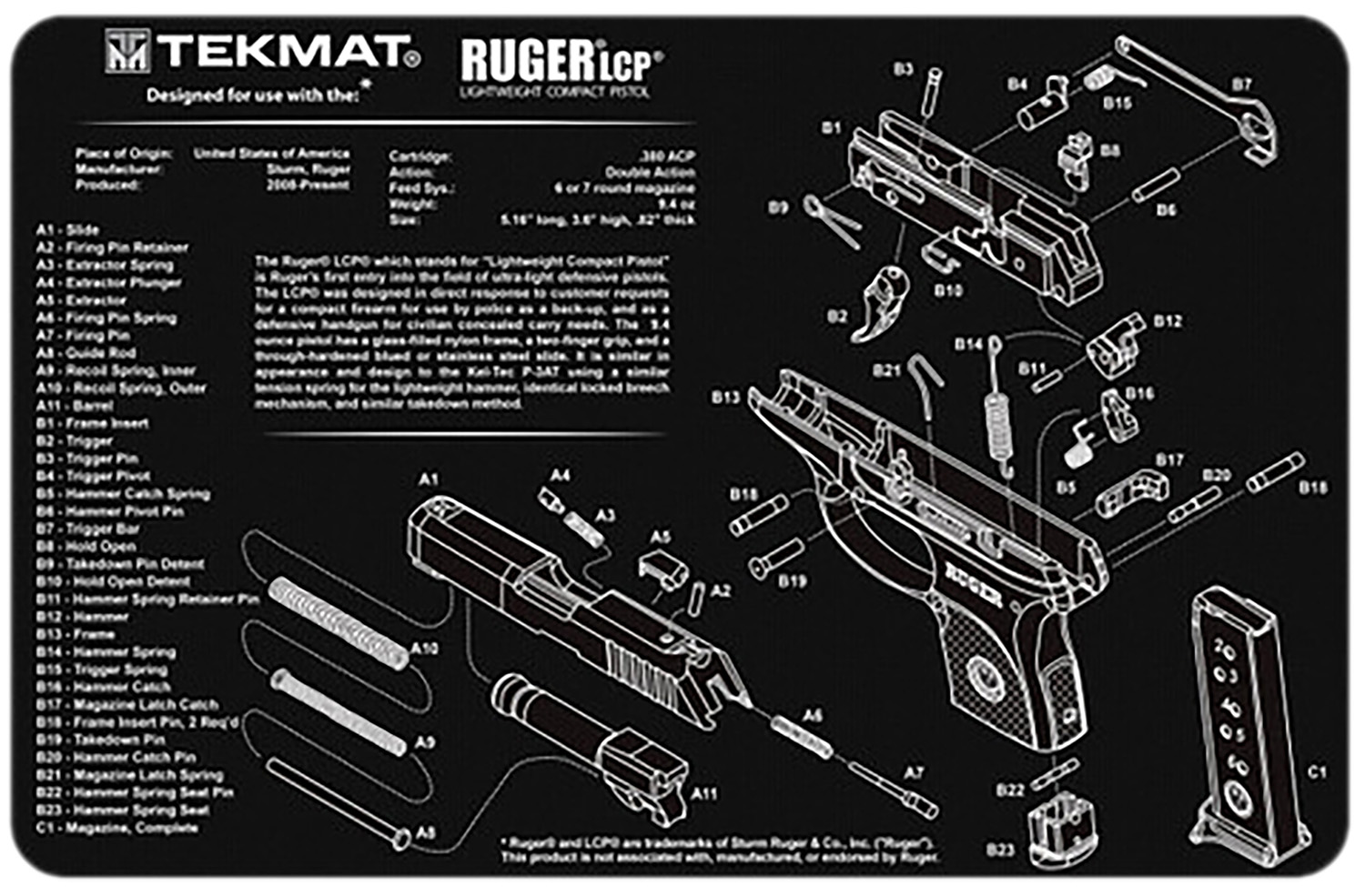 TekMat TEKR17RUGERSR22 Ruger SR22 Cleaning Mat Black/White Rubber 11″ x 17″