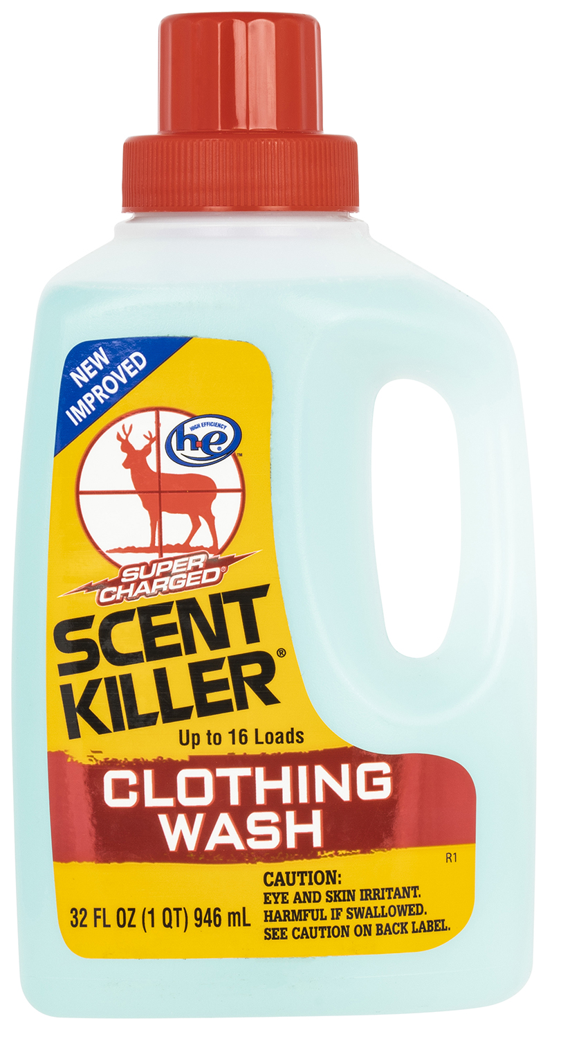 Super Charged Scent Killer Clothing Wash unscented formula fights odors and cleans your hunting clothes. No UV brighteners. The HE formula is for use in standard top loading and in high efficiency front loading washing machines.