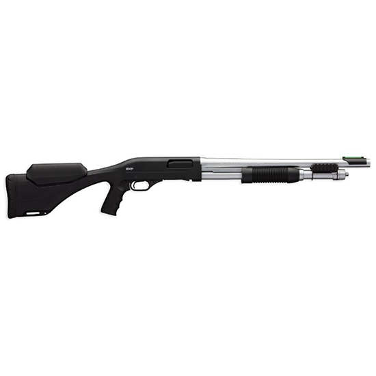 RECEIVER: Aluminum alloy; Matte black finish; Drilled and tapped for scope base – BARREL: Matte chrome 18 barrel with hard chrome chamber and bore – ACTION: 12 gauge and 20 gauge 3 chamber; Pump action – STOCK: Black composite; Textured gripping area; Pistol grip – FEATURES: Two interchangeable comb pieces to adjust drop; Two ¼ length of pull spacers; Side mounted Picatinny accessory rails included