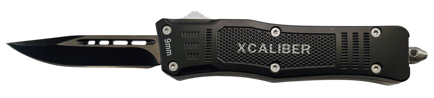 Xcaliber Knife Company 9mm Small 2.75″ OTF Drop Point Black 440C SS Blade, 3.91″ Steel Handle